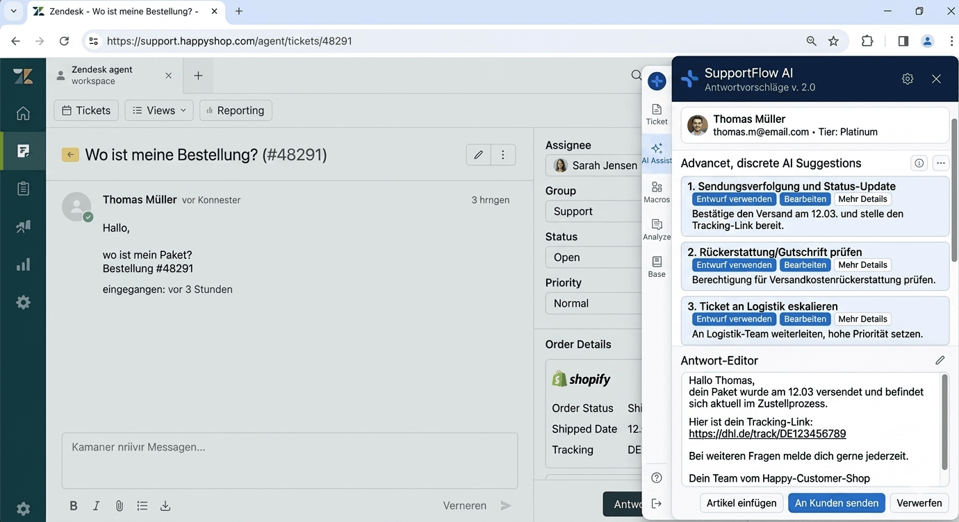 Funktioniert mit Shopify, Zendesk & bestehenden Systemenohne Umstellung